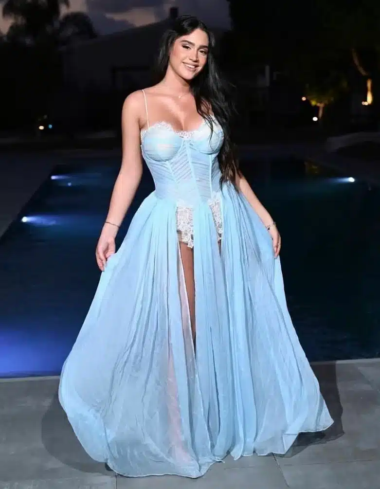 שמלת מקסי מנופחת בגזרת מקסי עם שסע ולוק נסיכתי