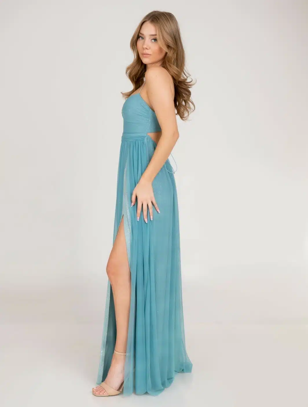 שמלת מקסי עם שסע עדין ופתח בבטן באזור המחמיא