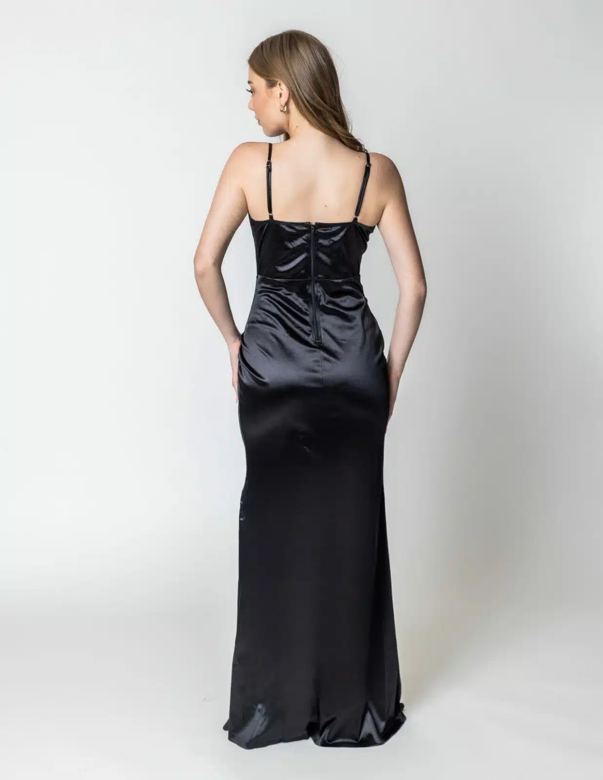 שמלת מקסי סאטן בסגנון מחוך עם כתפיות מתכווננות ושסע גבוה
