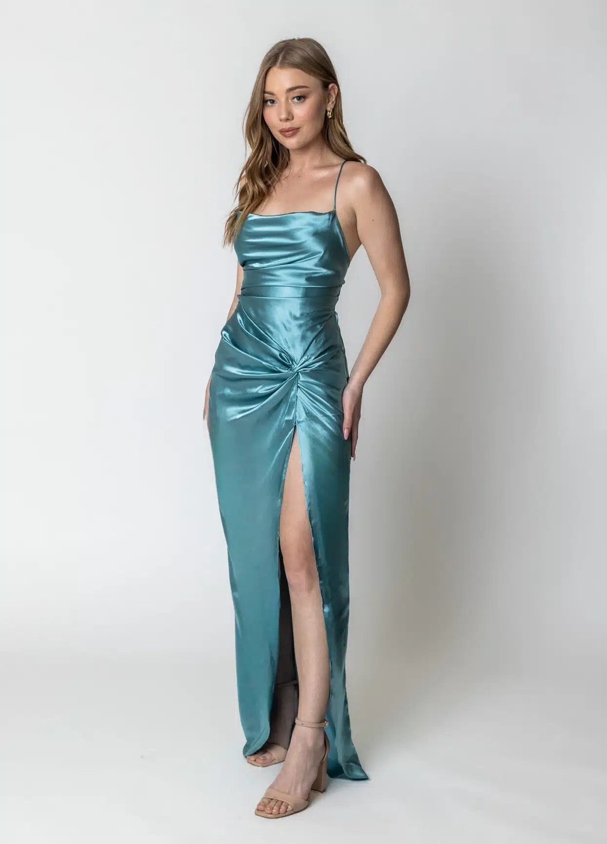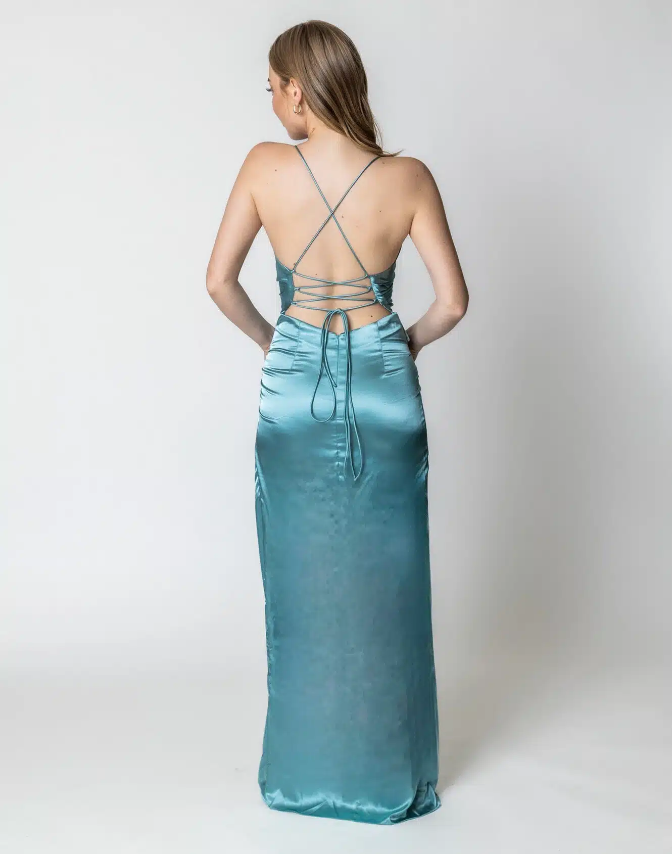 שמלת ערב סאטן עם קשר ושסע עם גב פתוח ללוק מושלם לאירוע שלך